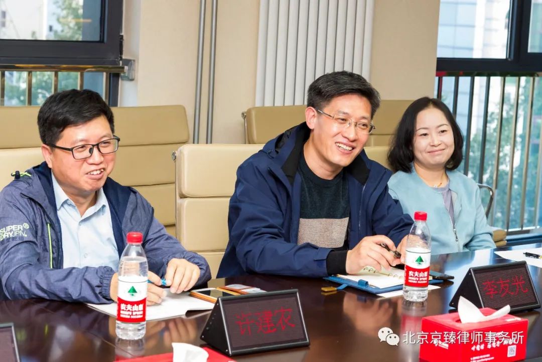 宋刚明对许建农、李友光等一行表示热烈欢迎,对中心对京臻律所发展给与的支持表示感谢。他表示,京臻律所坚持“党建引领 公益优先”,成立以来加强基层党组织建设,多角度、全方位开展党建活动,真正发挥了党组织的战斗堡垒作用。在公益法律服务方面,积极承办法援案件,认真做好公益法律讲座,得到广泛好评。希望通过与中心的合作,进一步做实青少年法律咨询服务工作,把公益法律服务工作推向深入。